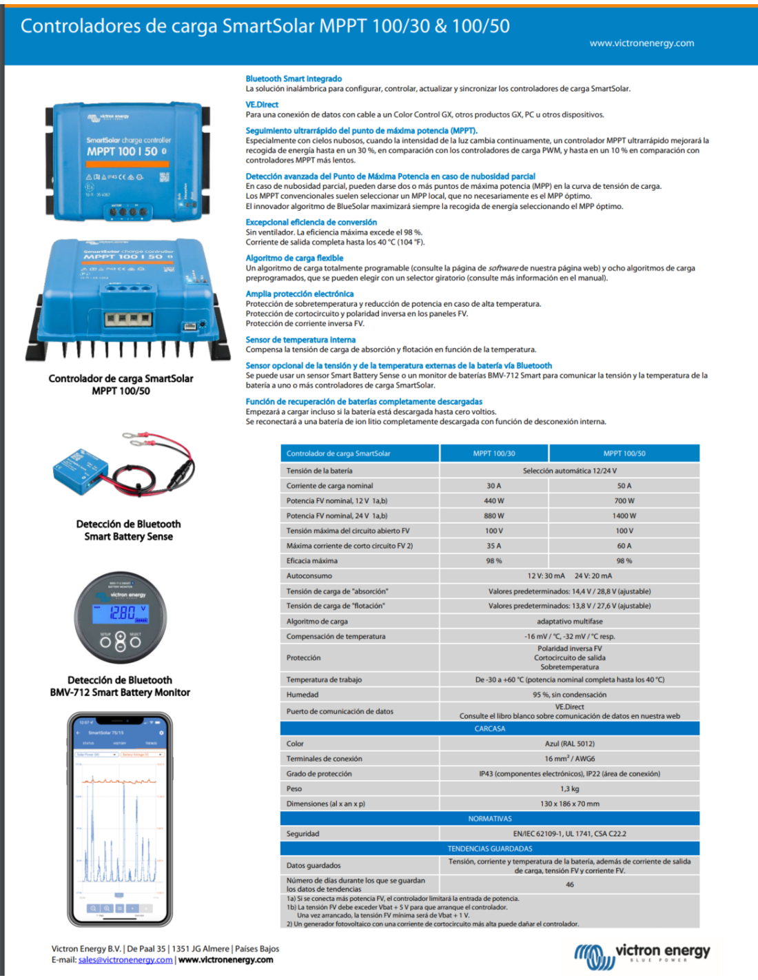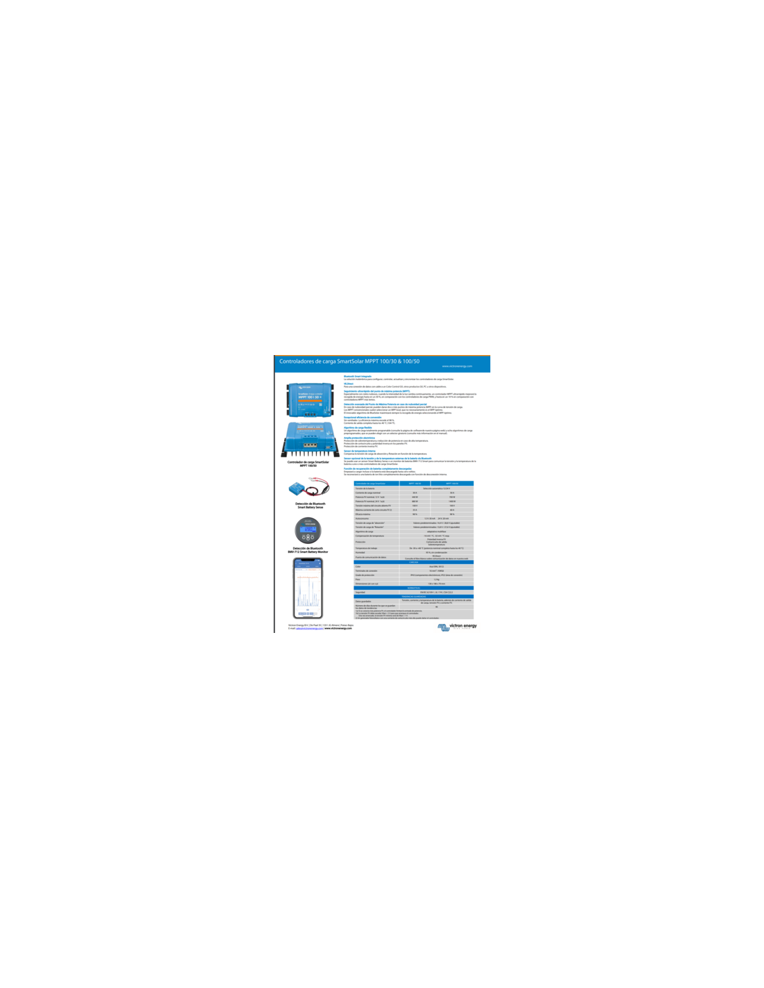 - Bluetooth Smart integrado La solución inalámbrica para configurar, controlar, actualizar y sincronizar los controladores de carga SmartSolar.