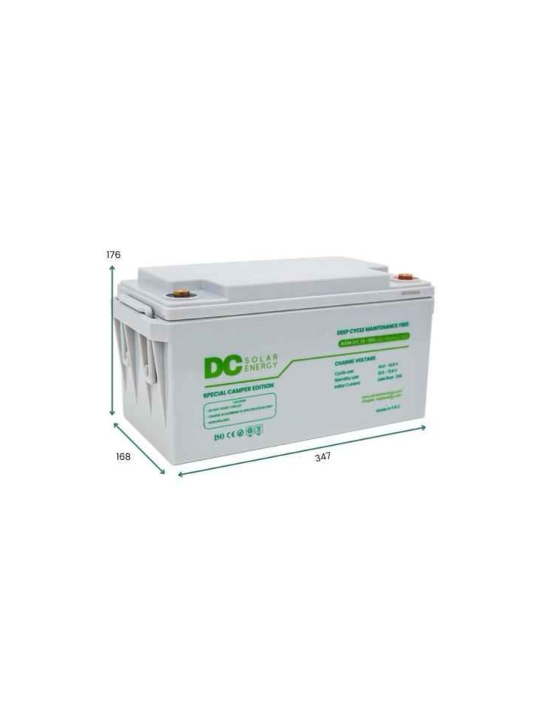 BATERIA CAMPER 12V 100AH DC SOLAR ENERGY. medida 34,7 x 16,8 x 17,6 cm 850 CICLOS DE CARGA AL 50%