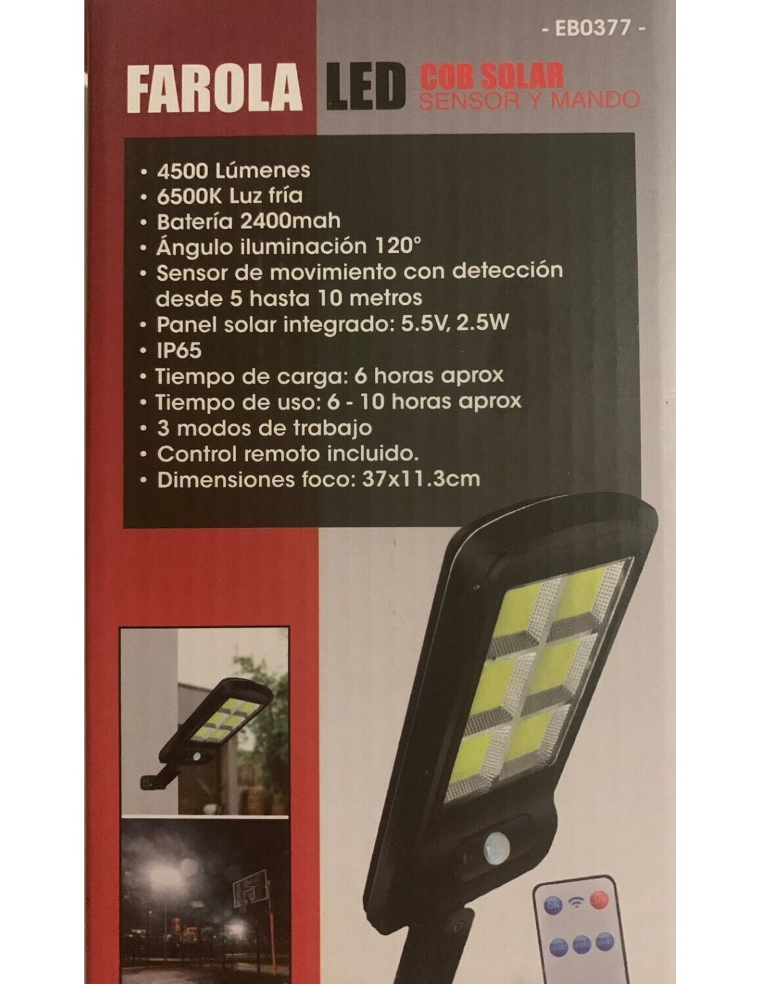 Farola Led Solar 6500K con sensor y mando.